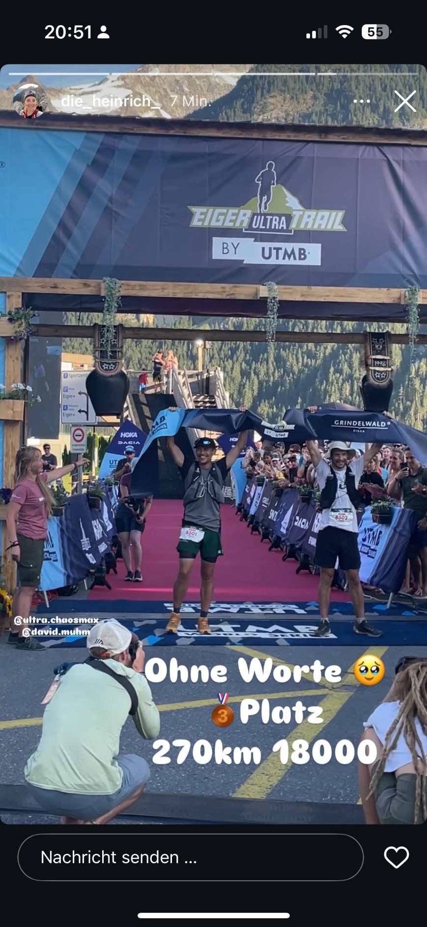 Wahnsinnsleistung von Markus "Mäx" Charvat in der Schweiz. Beim 270 km langen Ultra-Bewerb mit rund 16.000 Höhenmeter konnte er den 3. (!) Gesamtrang erreichen. In einer Zeit von unter 60 Stunden erreichte er überglücklich gemeinsam mit seinem Lauffreund das Ziel in Grindelwald!
