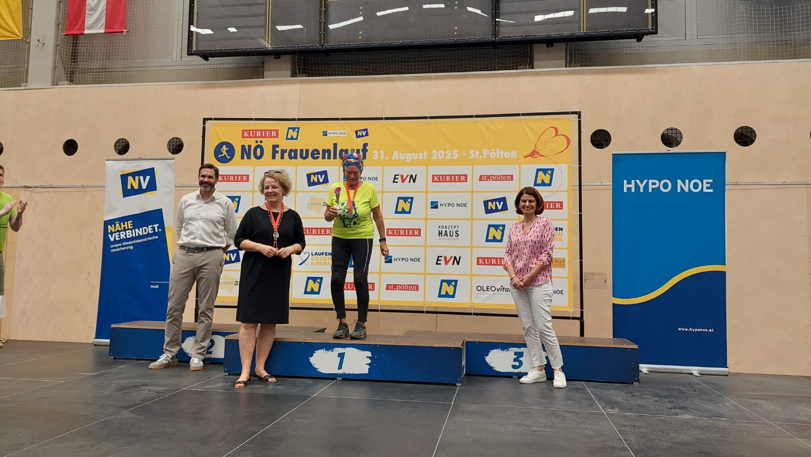 Katrin Schagerl und Evelyn Lechner starteten auf der 9,8 Kilometer langen Strecke, die um den Ratzersdorfer See und weiter ins Regierungsviertel bis zum Klangturm führt, ehe es entlang der Traisenpromenade wieder zum Start - und Zielbereich bei der NV Arena geht. Dabei konnte Katrin den starken 4. Gesamtrang unter knapp 430 Starterinnen erringen.