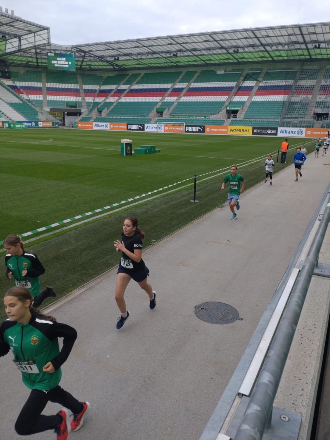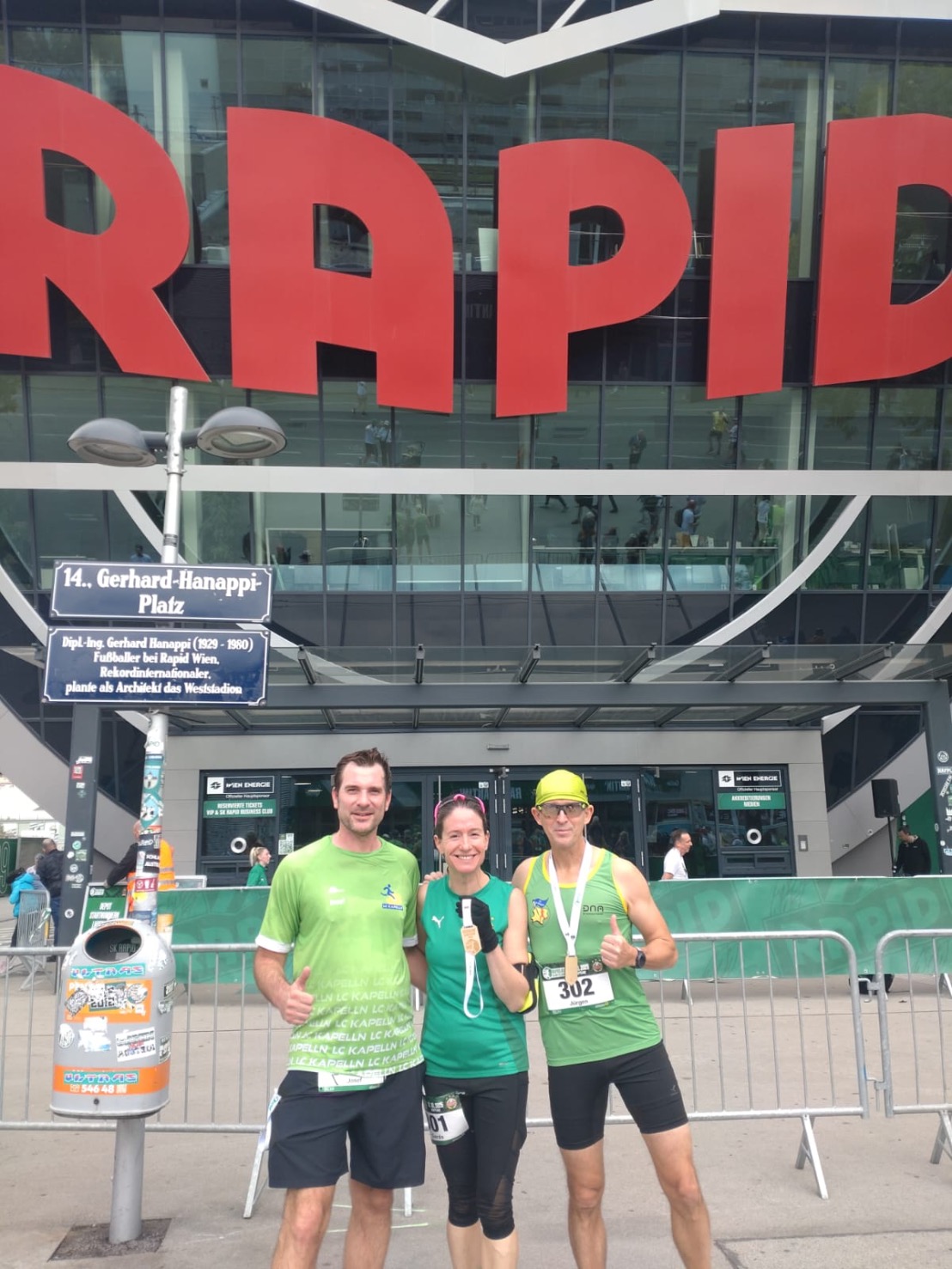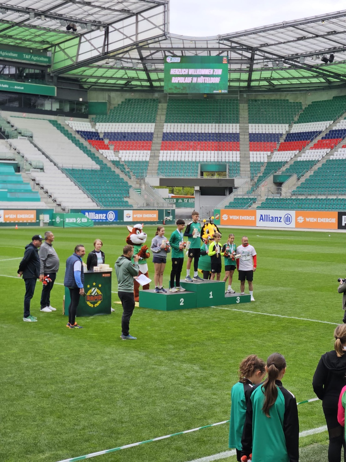 Erstmals fand der Rapidlauf in Hütteldorf statt, wo die Athletinnen und Athleten nicht nur um, sondern die Schlussrunde auch im Allianz Stadion laufen konnten. Unter den laufbegeisterten Rapid Fans waren auch Jürgen Aschauer, Gerda Schaden sowie Josef Skarek mit Jo, Sarah und Sabrina.