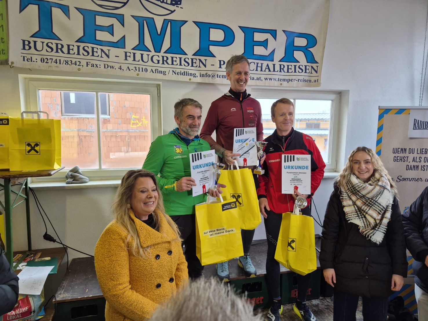 Fast schon Tradition ist der Silvesterlauf in Neidling für zahlreiche Läuferinnen und Läufer aus der Umgebung. Nicht einmal die eisige Kälte und die schwierigen Streckenbedingungen hielten unsere Athletinnen und Athleten davon ab, das Jahr sportlich auf der Langstrecke über 5,7 Kilometer oder der Kurzstrecke über 2,2 Kilometer ausklingen zu lassen. Familie Baumgartner startete in dreifacher Besetzung auf der Kurzstrecke und konnte dabei gleich drei Podestplätze für sich entscheiden. Auf der Langstrecke, die beginnend vom Schloss Goldegg auf verschiedenen Untergründen bis zum Haus der FF Neidling führt, standen acht Sportlerinnen und Sportler des LC Kapelln am Start. Poldi, Christian, René, Martin, Erwin, Markus, Ulrich und Katrin bewältigten die Strecke souverän und durften sich über zwei Podestplätze freuen. Zusätzlich konnte Katrin die Damenwertung bei der bereits 25. Ausgabe des Neidlinger Silvesterlaufes überlegen gewinnen - mit einem Respektabstand von über 3 Minuten!